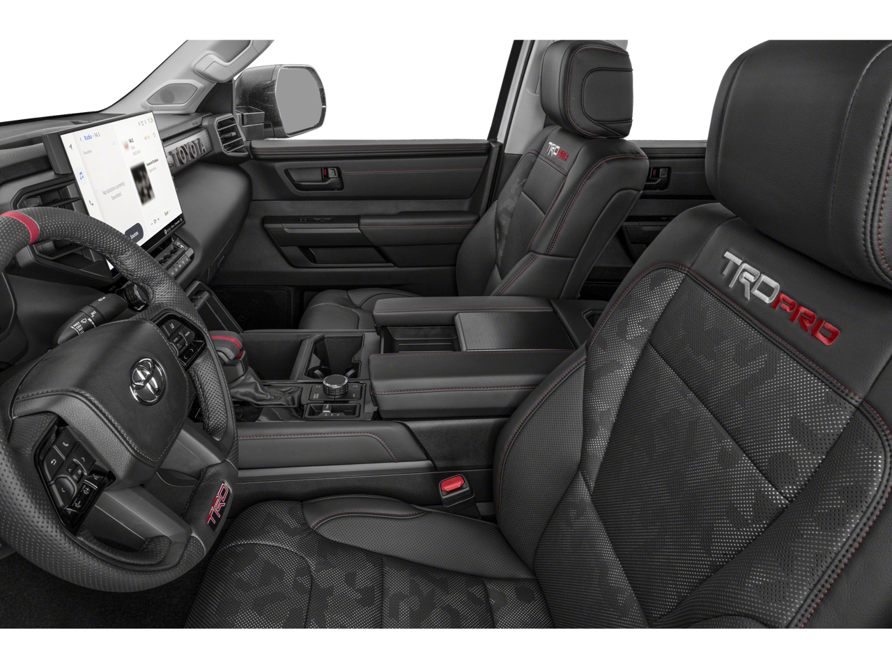 Stepping inside, you'll be greeted by a cabin that seamlessly blends premium comfort and advanced technology. Heated and ventilated front bucket seats, a TRD Pro-branded leather-wrapped steering wheel, and a 12-speaker JBL premium audio system create an unparalleled driving environment.